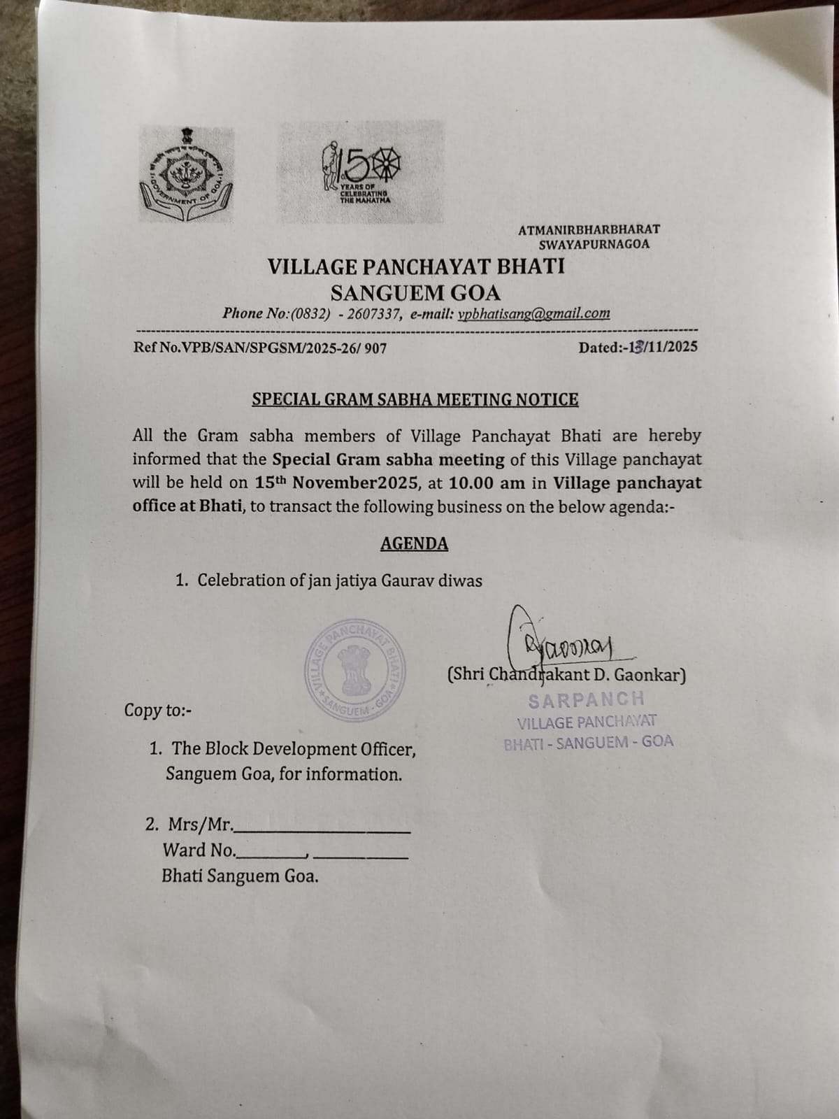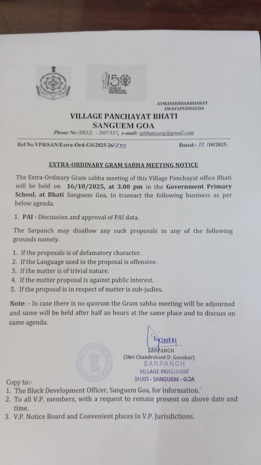 Notices & Tenders Notices Extra Ordinary Gram Sabha Meeting Notice 16/10/2025 Special Gram Sabha Meeting Notice 15/11/2025